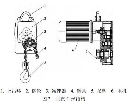 常見的環鏈電動葫蘆結構主要有下面幾種: 同軸輸入同軸輸出結構、C形結構布置、水平 C 形結構,今天我們就要針對這幾款結構進行詳細的介紹: