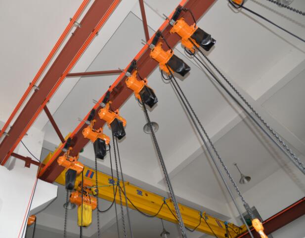 4、檢查鏈條的排列:對于多行鏈的環鏈電動葫蘆,應確保下鉤架不被翻轉。如翻轉,將其恢復至正常狀態,確保鏈條的焊接口排列成行。切勿在鏈條扭曲的葫蘆上懸掛負載。