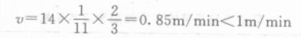 設卷揚機采用30KN慢速電動卷揚機,線速度為14m/min,布置在地面上。牽引滑車組采用5門,工作線數11,布置在網架支座軸線的延長線上。鉤扎滑車組的卷揚機速度較快,為了降低牽引速度,在牽引滑車組與鉤扎滑車組之間,再增加單門滑車組,根據圖14-1中繞發,可減速2/3.這樣,牽引速度可減為: