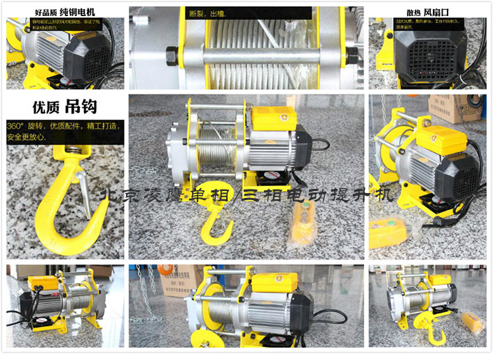 單項多功能電動提升機較普通的電動提升機最大的區別在于是可以在單相電的情況話進行操作的。本產品嚴格按國家3包執行,產品質量由中國人民保險公司(PICC)承保,請放心使用。